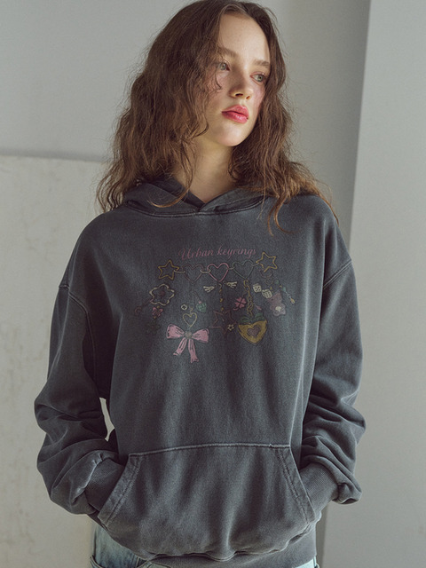 [꼼파뇨] 어반키링 크롭 피그먼트 후드티 스모크블랙