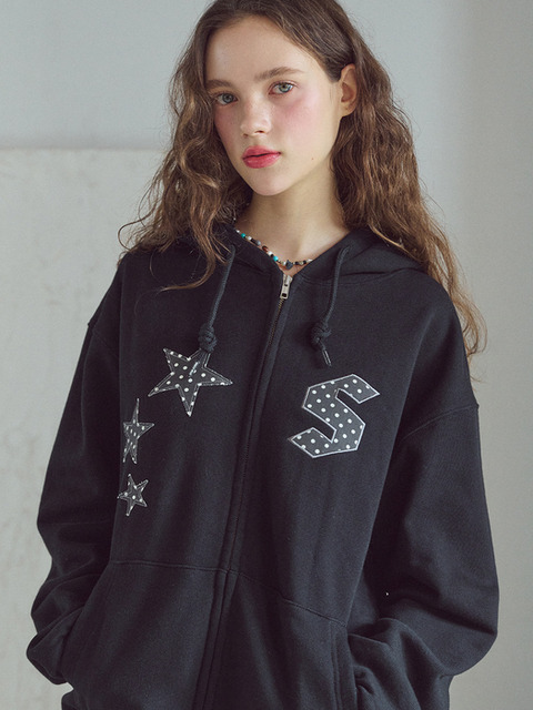 [꼼파뇨] [2-WAY] 도트스타 패치 후드 집업 블랙