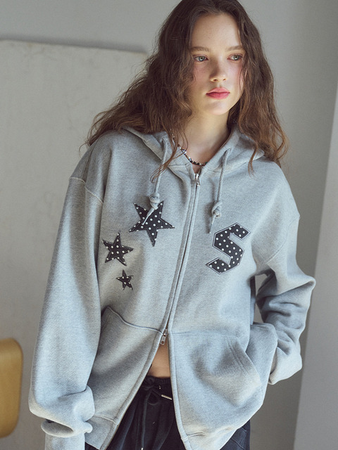 [꼼파뇨] [2-WAY] 도트스타 패치 후드 집업 그레이