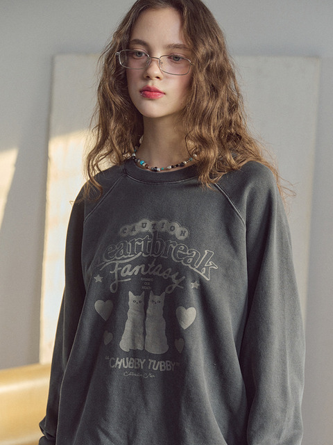 [꼼파뇨] 처비터비 레글런 피그먼트 맨투맨 스모크블랙