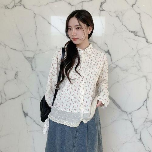 [신상오픈런]여성용 레이스 꽃무늬 루즈핏 면혼합 셔츠