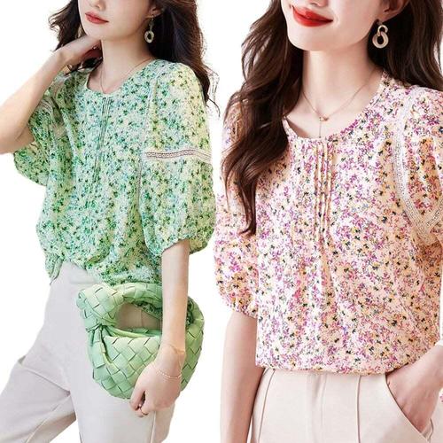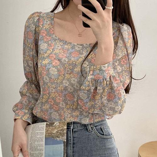 [신상오픈런]여성용 꽃무늬 블라우스 로맨틱 스타일
