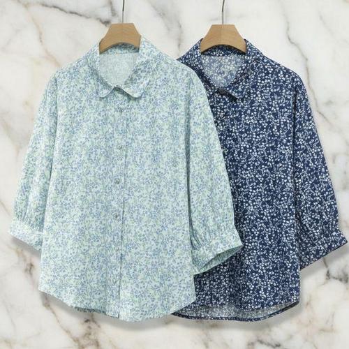 [엄지척]린넨 오버핏 여성 7부 셔츠 예쁜 꽃무늬 블라우스_19651126_667501