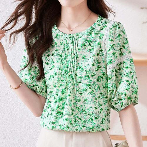 [셀럽하우스]여성 PLSY7747 여름 꽃무늬 플라워 반팔 블라우스 그린