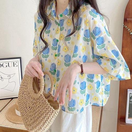 [오아즈]여성 플라워 꽃 패턴 색색 컬러풀 셔츠 2color
