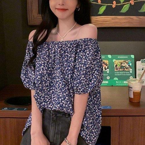 [모노무드]MNO 베이직 상의 시즌 룩 드레스셔츠 반소매 꽃무늬숄더리스