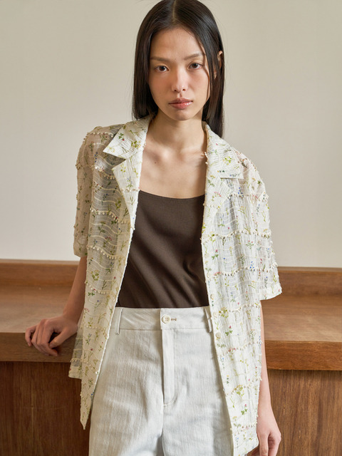 [오브 서울] 꽃자수 오픈 카라 셔츠 (크림)