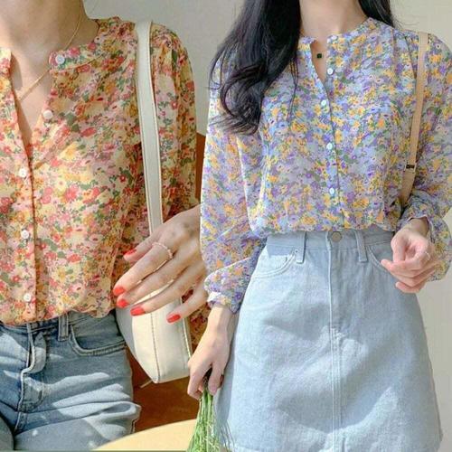 [셀럽하우스]러블리 YWEL5245 쉬폰 꽃무늬 블라우스 퍼프 긴팔 봄가을