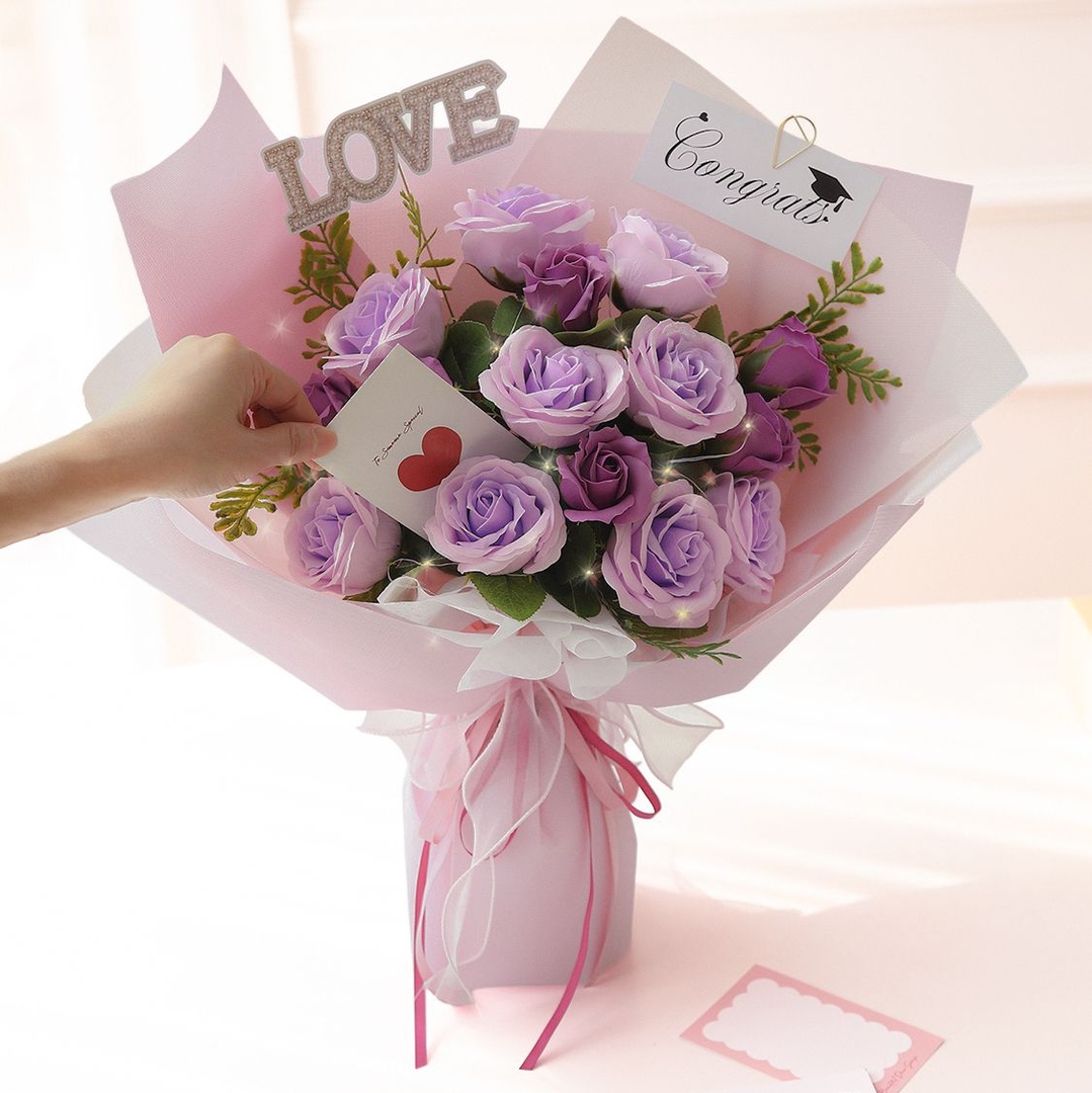 러브로즈 LED 대형 장미 토퍼 비누꽃 꽃다발 6color