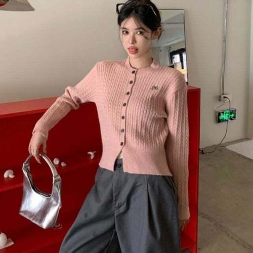 [셀럽하우스]5컬러 YYJH7766 떡볶이 단추 꽈배기 가디건 라운드넥 겨울니트
