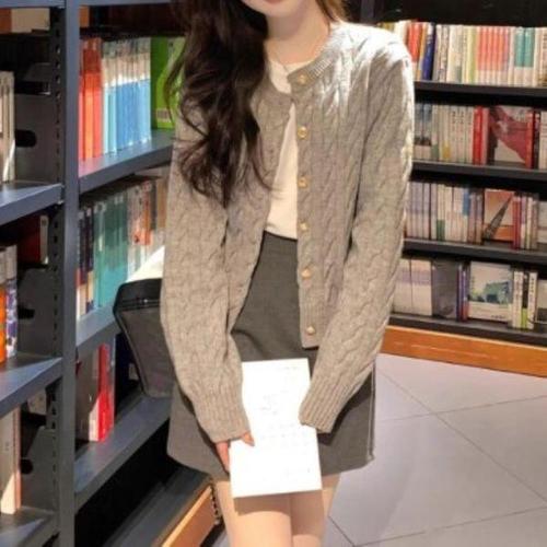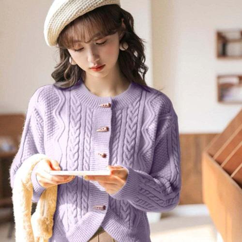 [신상오픈런]여성용 부드러운 아크릴 꽈배기 디자인 라운드넥 카디건