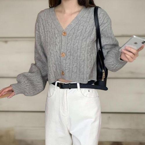 쿠스 여성 크롭 케이블 꽈배기 니트 가디건