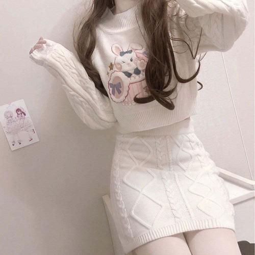 [셀럽하우스]반폴라 GSIY3314 토끼 크롭니트 니트 밴딩 스커트 꽈배기