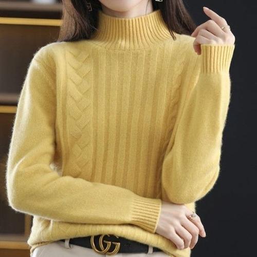 [엄지척]여성 가을 겨울 꽈배기 패턴 반폴라 니트 티셔츠 반목_19678899_667501