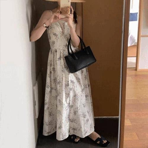 끈나시 플라워 원피스 여름 트위드 롱 하객 뷔 WFKNXJJ