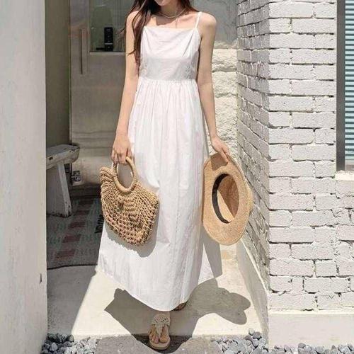 여성 롱원피스 사이즈 나시 홀 브이넥 휴양지 뷔스티에 여름 LLD153 S 원피스 끈나시