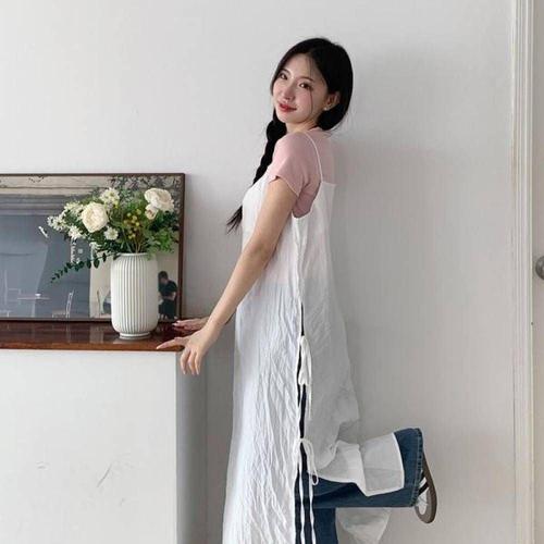 롱니트 끈 여름 여성 데님 온나핏 나시 뷔스티 WFKOIYY