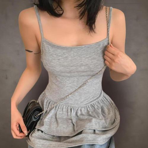[옷자락] 여성 찰랑핏 프릴 캉캉 레이어드 끈나시 미니 원피스