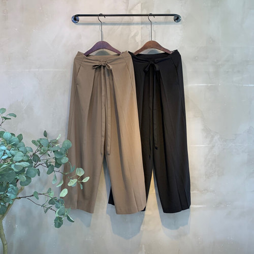 플러리싱 / 리본 끈 와이드 레이온 슬랙스 플러리싱