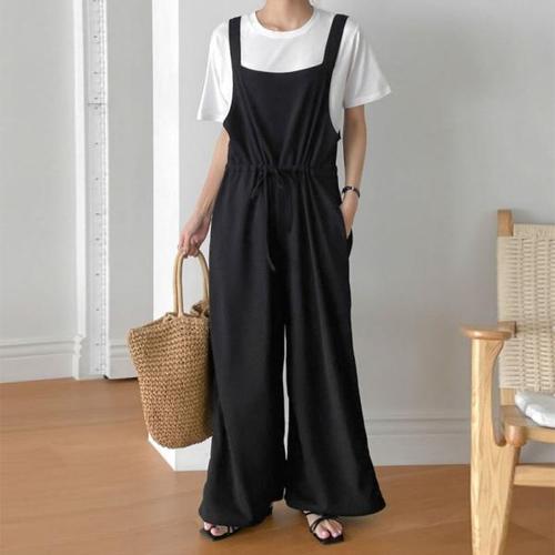 |KSP8D18|여성용 린넨 와이드 점프수트 끈 조절 페스티벌 스타일