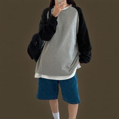 [에꼴리에] 여자 겨울이월 루즈핏배색라글란맨투맨티(23D3458)