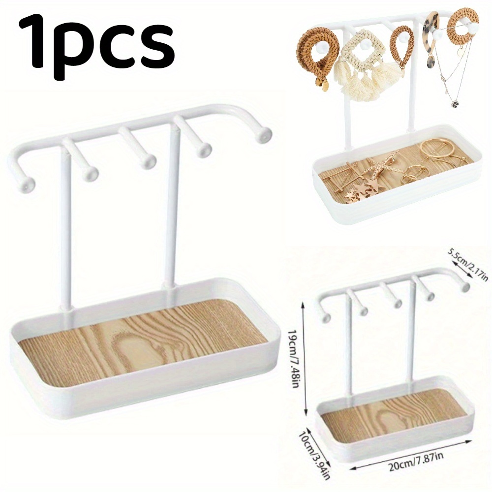TEMU 1pc 다용도 보석 정리함 스탠드 트레이 - 우아한 목걸이 & 귀걸이 홀더 나무 베이스 & 플라스틱 랙 | 반지, 열쇠, 팔찌 & 시계에 적합 | 화장대 & 의자 디스플레이, 보석 정리함 보관에 완벽|키링