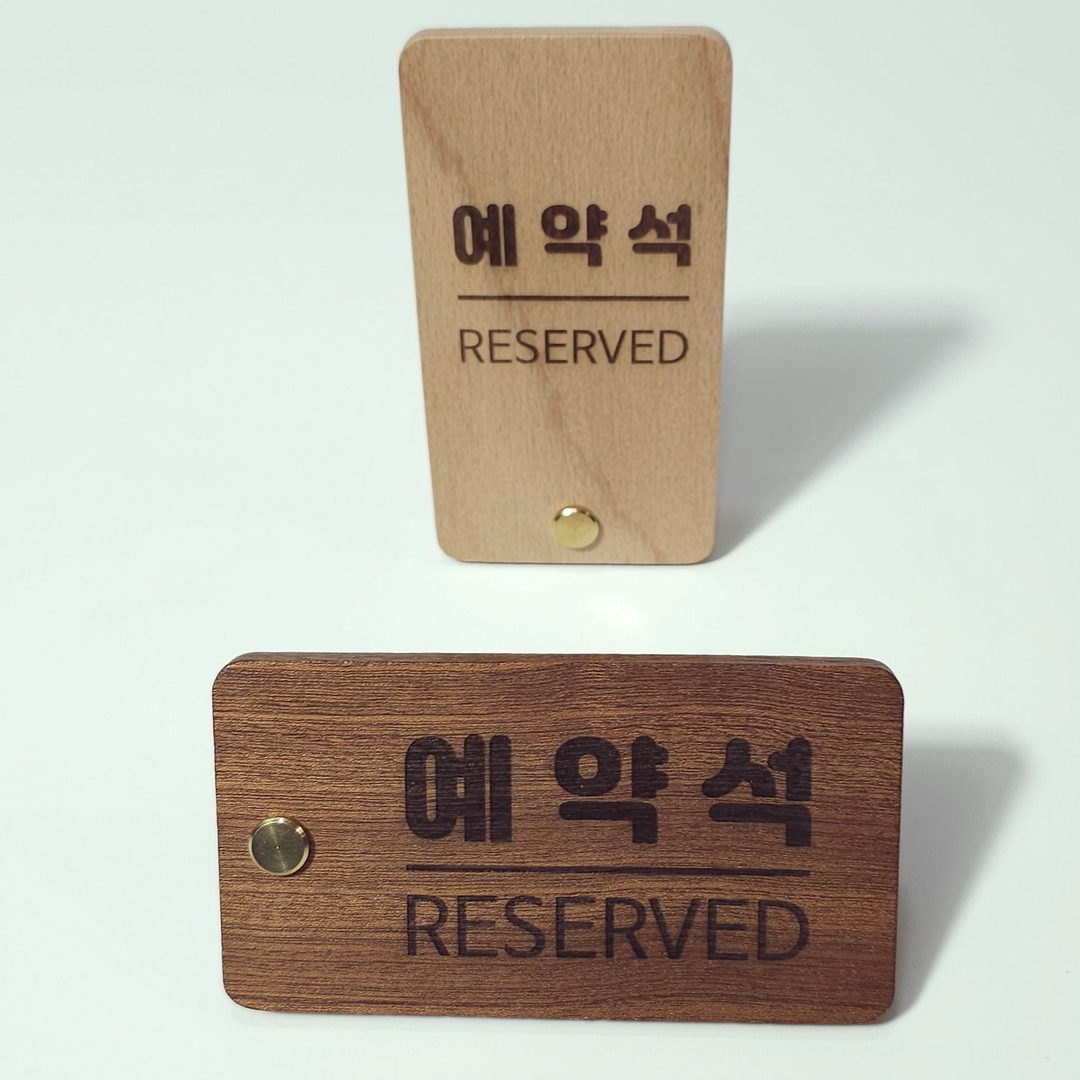예약석 안내판 표지판 팻말 푯말 데스크 테이블 우드 나무 각인