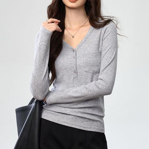 나바바 / NT3035 데일리 버튼 포인트 브이넥 긴팔 티셔츠
