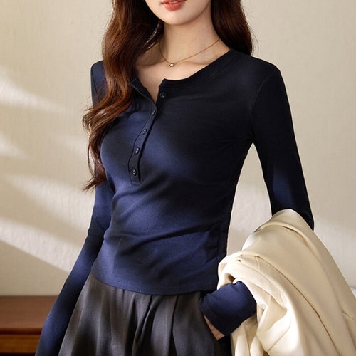 나바바 / NT2970 여성 데일리 배색 U넥 카라 긴팔 티셔츠