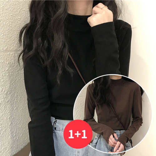 나바바 / NT3117 여성 1 + 1 무지 이너 벨벳 반폴라 긴팔 티셔츠