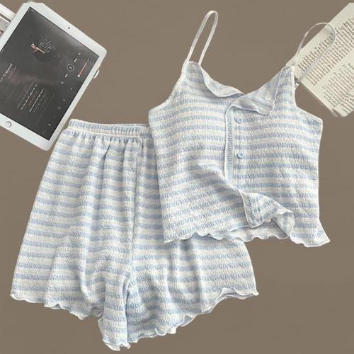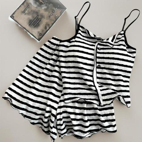 [신상오픈런]여성용 스트라이프 캡내장 나시와 반바지 홈웨어 세트