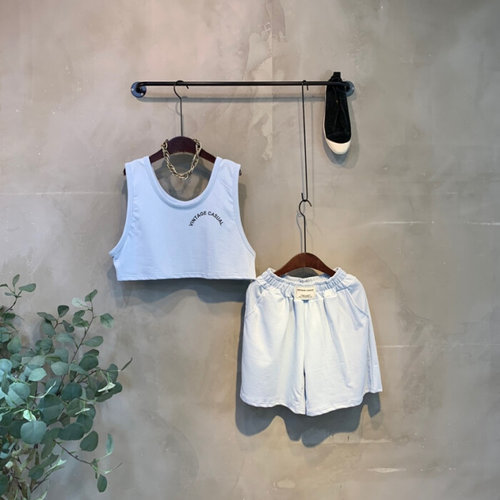 씨샵인더룸 / 빈티지 크롭 민소매 밴딩 반바지 세트 3color