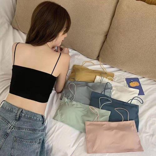 여름 신상 심플 코튼 슬링 캐미솔 여성 소녀 크롭탑 민소매 셔츠 레이디 브라탑 스트랩 스키니 캐미솔 베이직