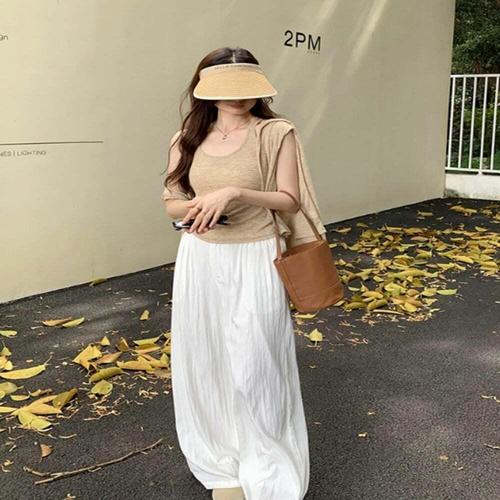 [셀럽하우스]여성 NNKM8969 여름 나시 반팔 시스루 티 셔츠 세트 화이트