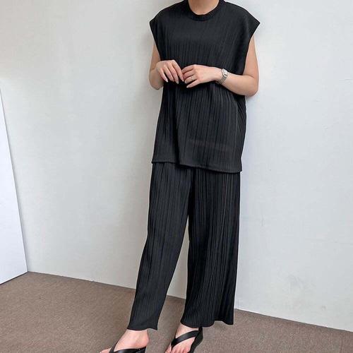 [셀럽하우스]여름철 LABB4608 시원한 폴드 맞주름 나시 바지 상하의 세트