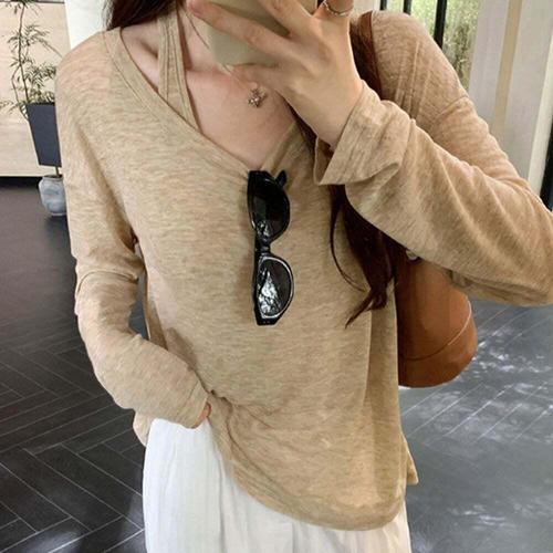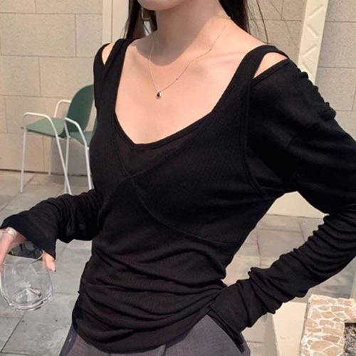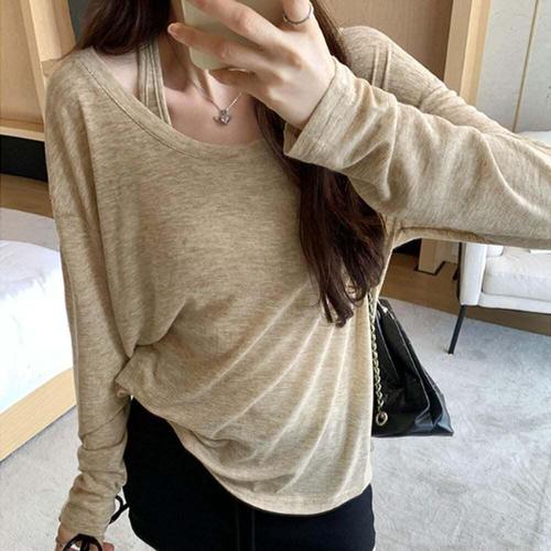 [셀럽하우스]데일리 QBPG1646 여성 슬리브리스 레이어드 긴팔 티셔츠 세트