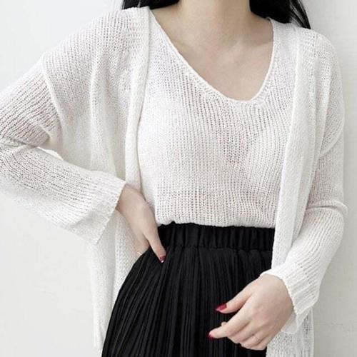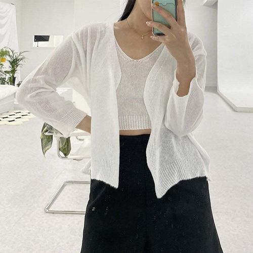 [셀럽하우스]여자 YBVQ5678 이너나시 크롭 민소매 긴팔 얇은 가디건 세트
