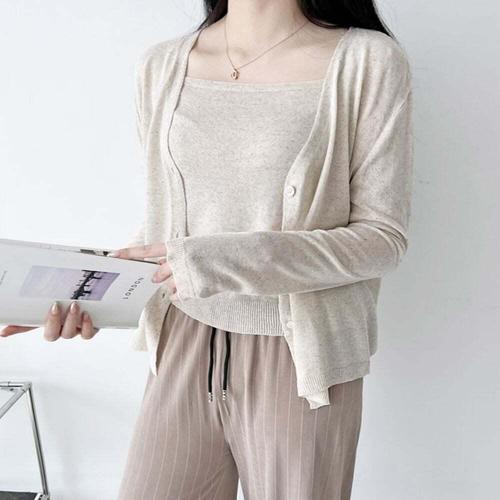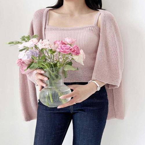 [셀럽하우스]심플 QNVM4566 여자 니트 가디건 여성 여름 나시 가디건 세트