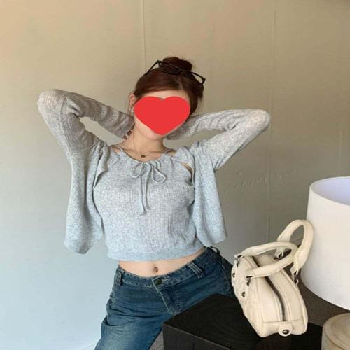[셀럽하우스]크롭 MOSO9153 여성 가디건 그물 나시티 여자 가디건 세트 2색