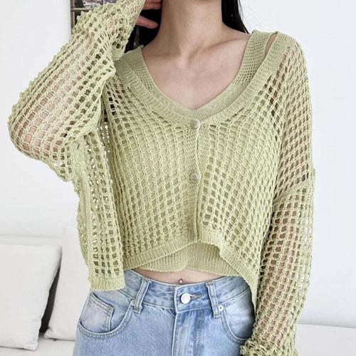[셀럽하우스]크롭 DFUZ2481 여성 가디건 그물 나시티 여자 가디건 세트 2색