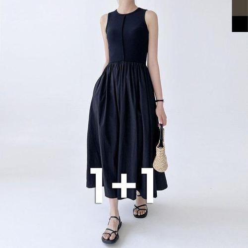 [셀러허브_여성트랜드패션]ONM 플레어 레이어드 민소매 라운드넥 롱원피스