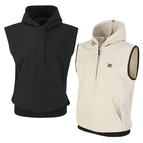 SNP골프 여성 하프 집업 후드 슬리브리스 톱