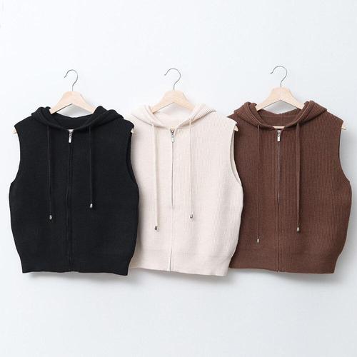 [옷자락]여성 골지 후드 민소매 울니트 조끼 베이직핏