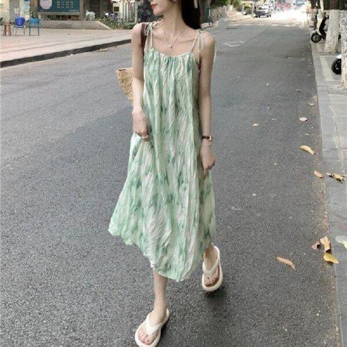 [셀러허브_여성트랜드패션]ONM 여성 뷔스티에 롱원피스 여름 나염 끈나시