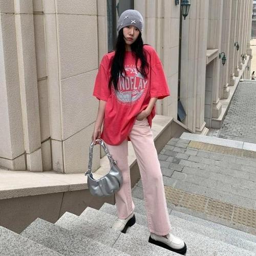 [다잇템][다잇템] 여성 컬러레터 나염 일상용 반팔티_23436699_588872