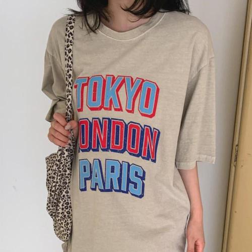 F007527_빈티지프린팅 루즈핏 롱 반팔티 나염티