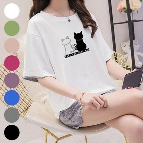 여신 여성용 오색 나염 루즈핏 미디움 티셔츠
