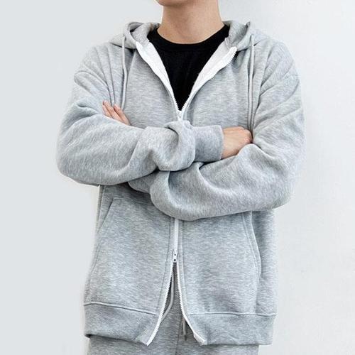 1+1 남자 심플 긴팔 후드티 맨투맨 오버핏 무지 후드집업 빅사이즈 트레이닝복 기모 두꺼운 데일리 캐주얼 상의 루즈핏 학생 아우터 상의