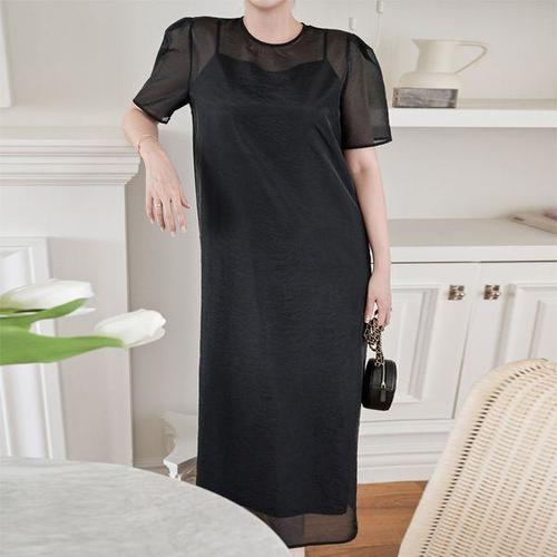 [클로젯나인]오간자 퍼프 롱 원피스_슬립 세트(black)