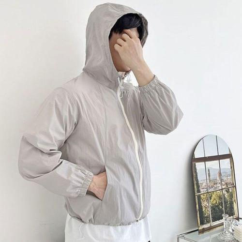 [에이치플러스몰]남성 후드스트링 투웨이 바람막이 나일론자켓 간절기